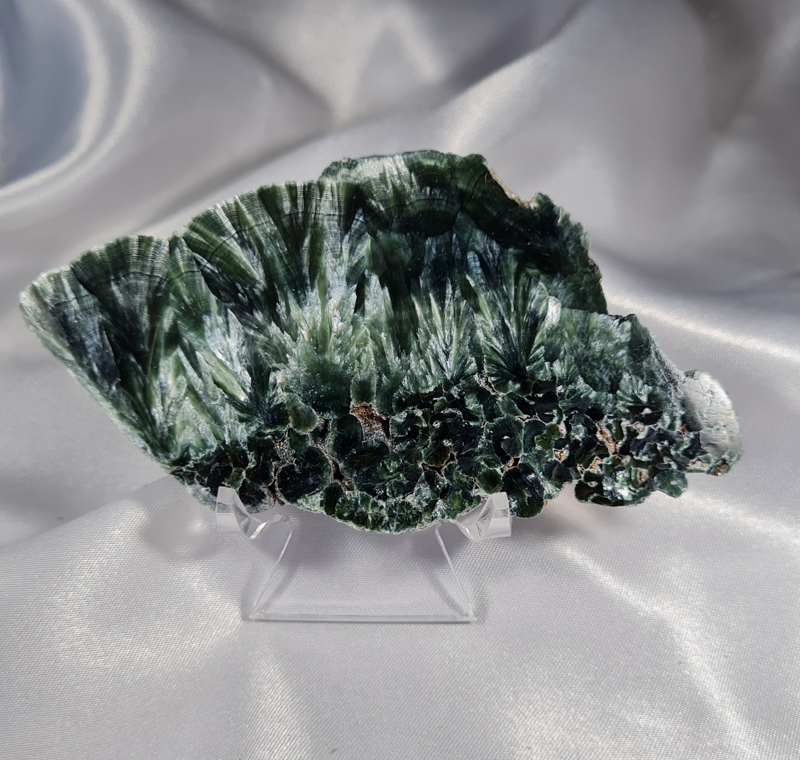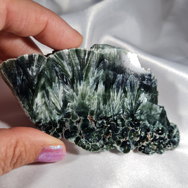 Materiaal: Serafiniet (clinochloor), blad-silicaat uit de chlorietgroep