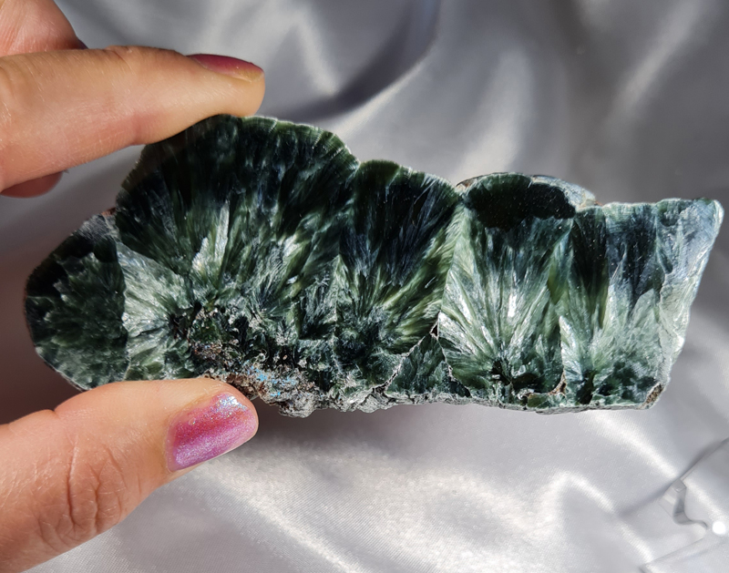 Materiaal: Serafiniet (clinochloor), blad-silicaat uit de chlorietgroep