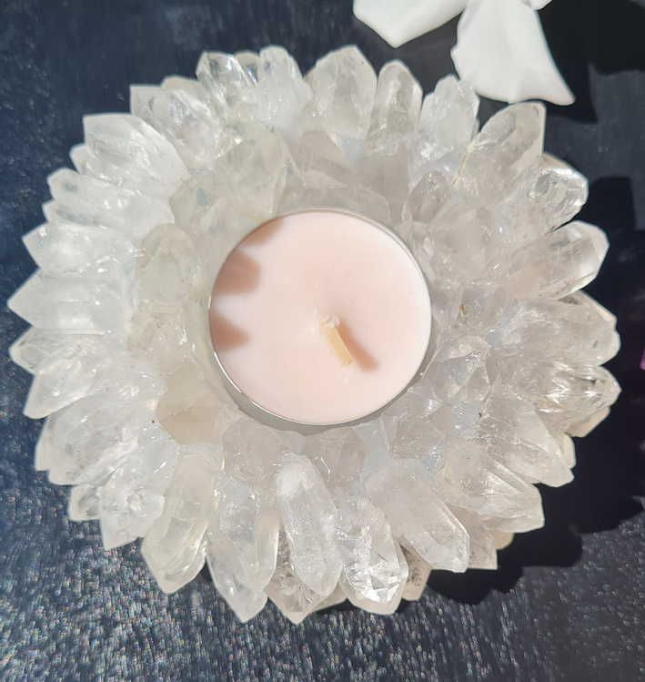 Mooie Bergkristal Punten Theelichthouder of Waxinelichthouder.