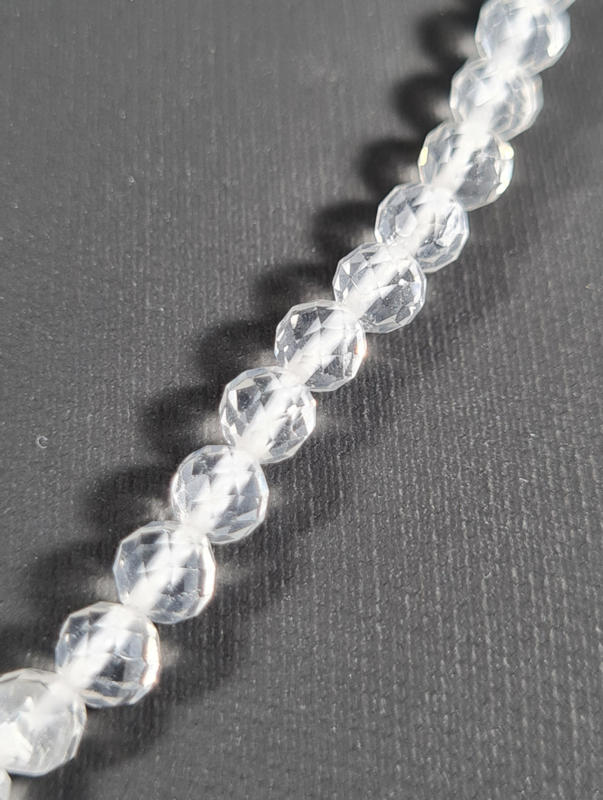 Een prachtige ketting met mooie fijne 4 mm facet geslepen kralen in Bergkristal.