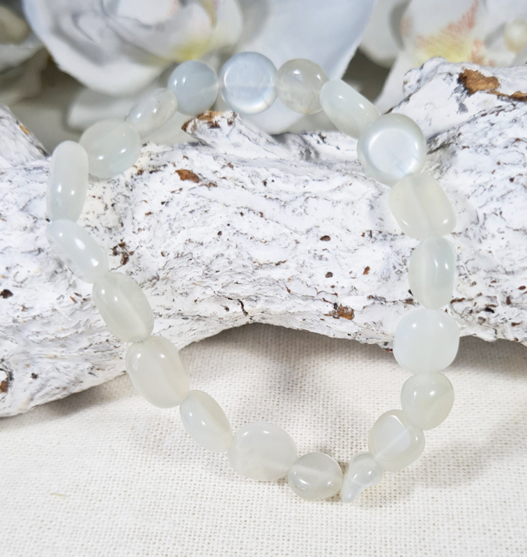 Edelsteen Armband Maansteen Wit Trommelsteen 6-8 mm