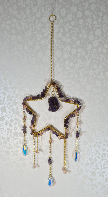 Artikelnummer: 4178 - p OverzichtEen mooie raamhanger / suncatcher in de vorm van een ster mooi bewerkt met Amethist steentjes.