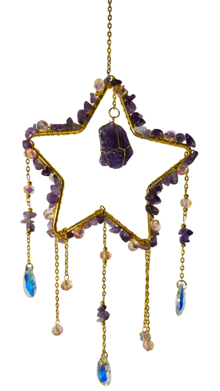 Raamhanger Suncatcher Ster met Amethist 12 cm