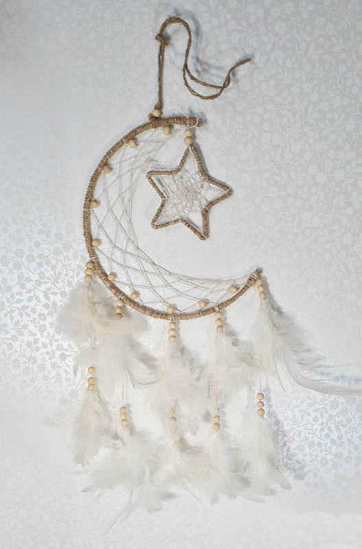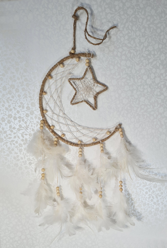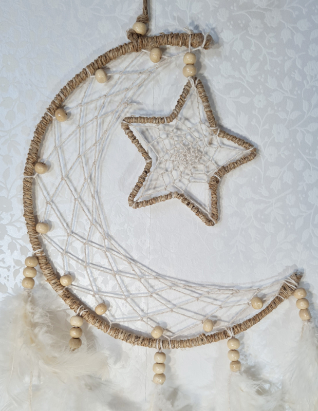 Dromenvanger Maan met Ster Hennep Wit 18 cm
