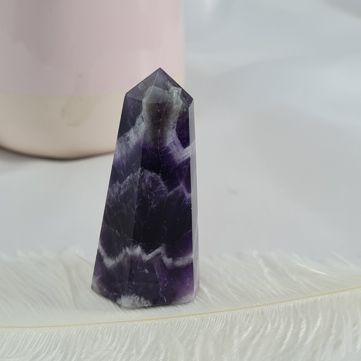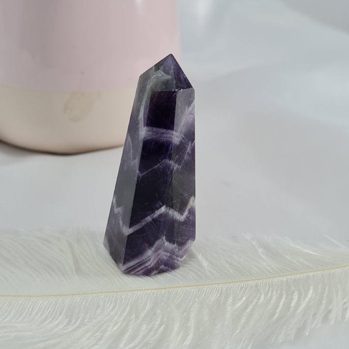 Artikelnummer: wmp OverzichtEen mooie chevron Amethist punt met een mooi lijnenspel.
