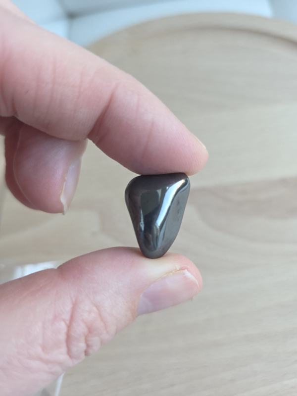 OverzichtEen mooi trommelsteen van Hematiet met de prachtige zilver/ zwarte kleur en een mooie glans.