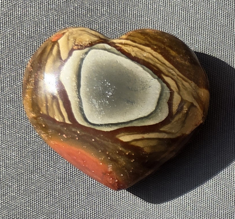 Prachtig Geslepen Polychroom Jaspis hart afkomstig uit Madagaskar