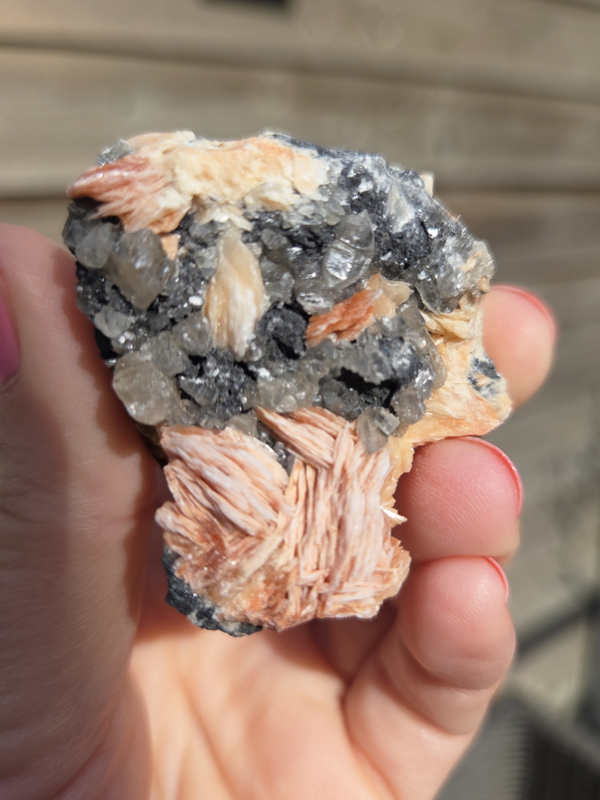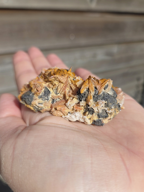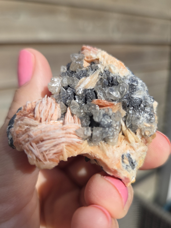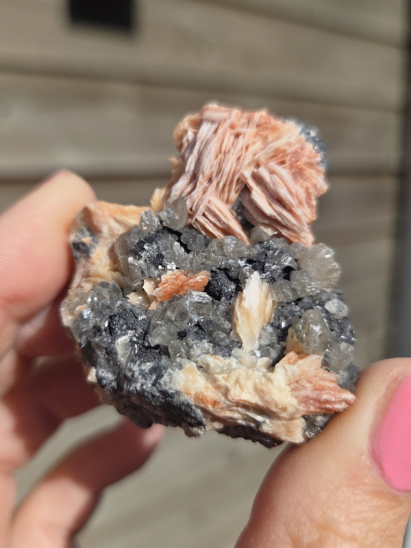 Dit bijzondere cluster combineert de helende krachten van twee krachtige mineralen – Bariet en Cerussiet – die elkaar perfect aanvullen. Het stuk heeft een mooie, subtiele uitstraling met de helderheid en kracht van Bariet die prachtig samengaat met de glinsterende lichten van Cerussiet.