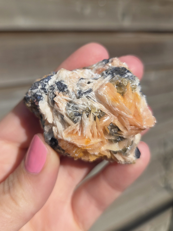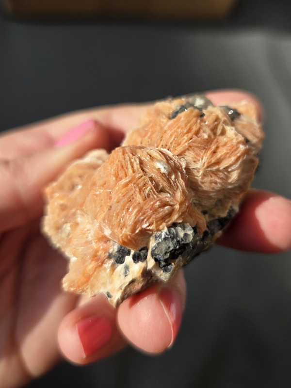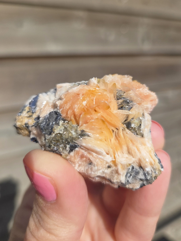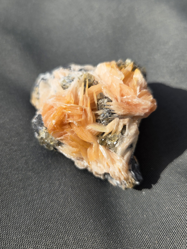 Dit bijzondere cluster combineert de helende krachten van twee krachtige mineralen – Bariet en Cerussiet – die elkaar perfect aanvullen. Het stuk heeft een mooie, subtiele uitstraling met de helderheid en kracht van Bariet die prachtig samengaat met de glinsterende lichten van Cerussiet.