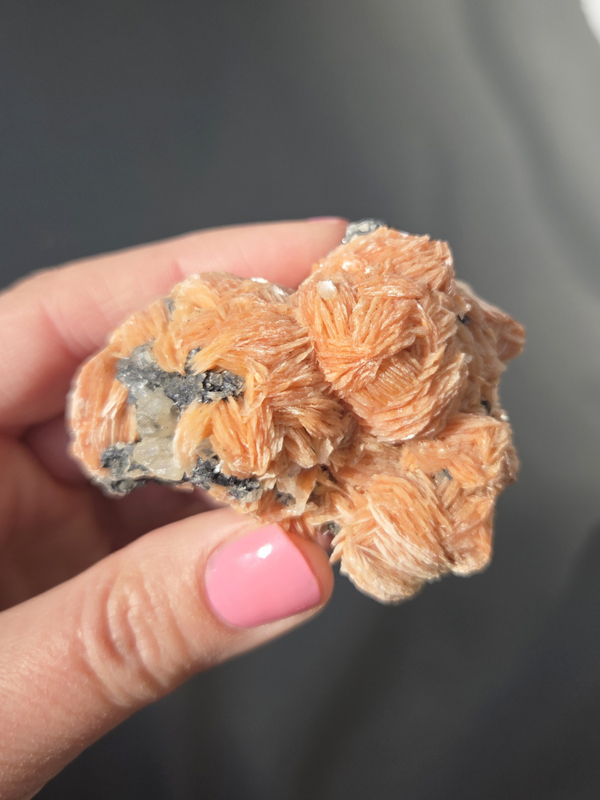 - Kleur en Materiaal: De Bariet heeft een delicate, melkachtige uitstraling, terwijl de Cerussiet subtiele glans en helderheid toevoegt, waardoor het geheel een magisch visueel effect heeft.