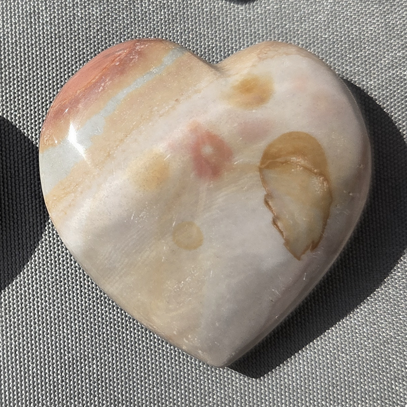 Prachtig Geslepen Polychroom Jaspis hart afkomstig uit Madagaskar