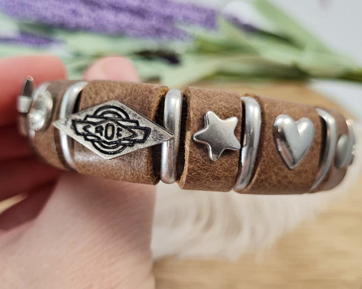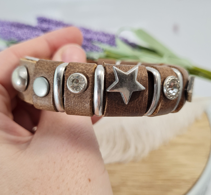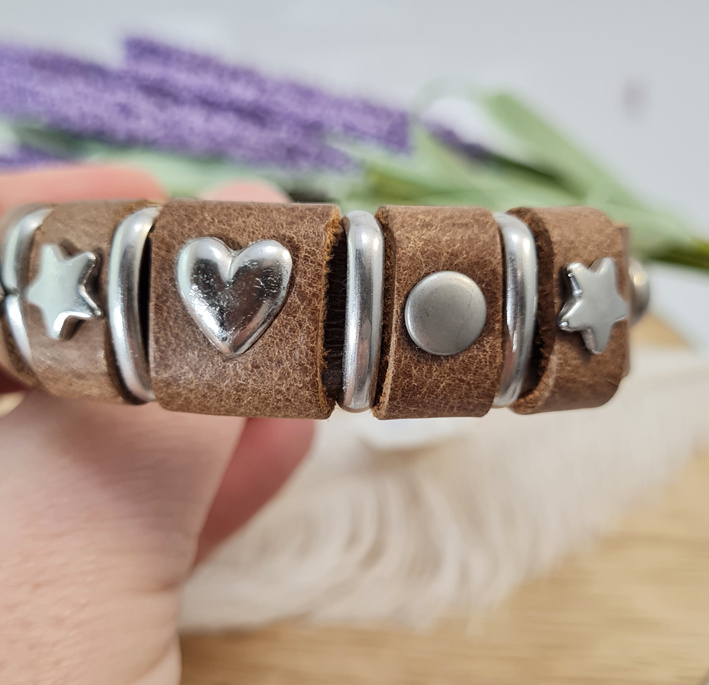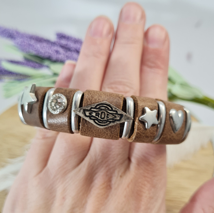 Artikelnummer: HLA 0270-GREY OverzichtTop kwaliteit lederen overschuif armband. Met leertjes en verschillende studs. Maakt je outfit helemaal af!