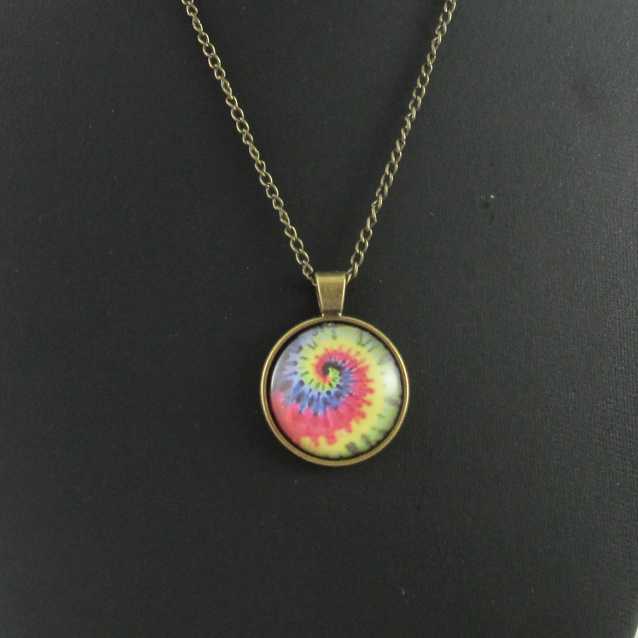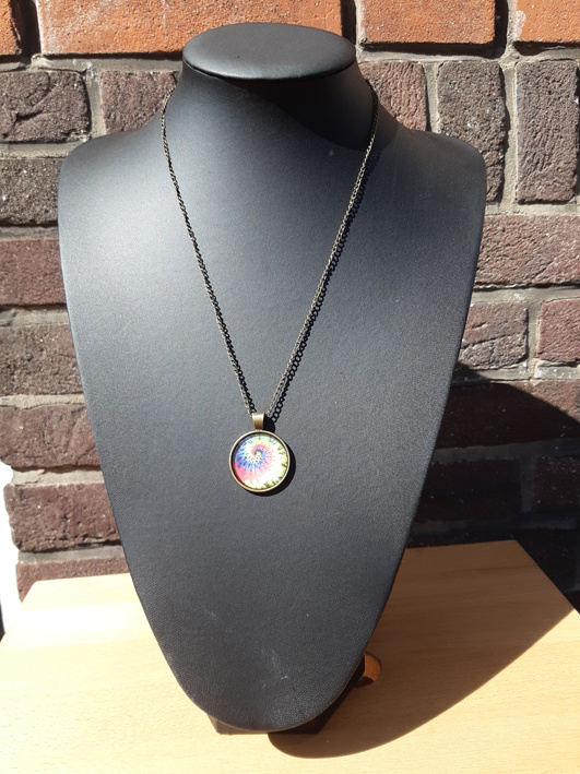 Cabochon ketting levensboom - spiraal - regenboogMooie ketting 48cm met glas cabochon hanger 28mm.