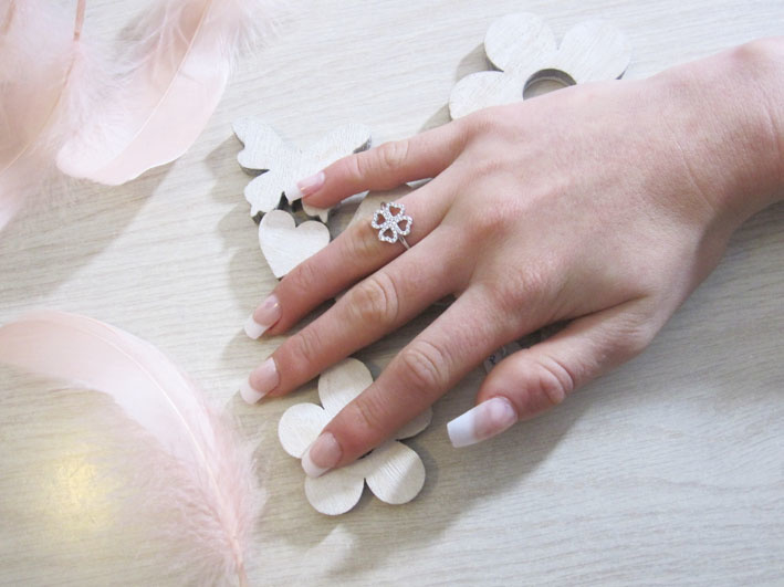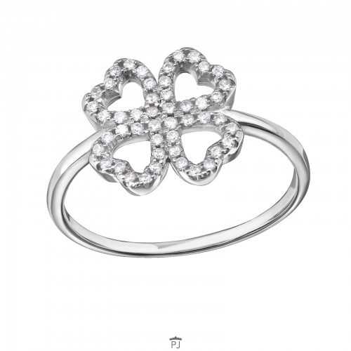 Wat een geluksbrenger deze ring. De vier kleine hartjes vormen samen een klavertje vier. Het klavertje is gezet met kleine zirconia steentjes.