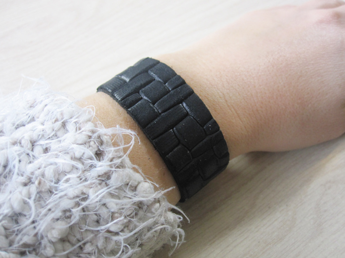 Artikelnummer: CLTR1001 OverzichtStoere Tressia armband van zwart suede met basket print.