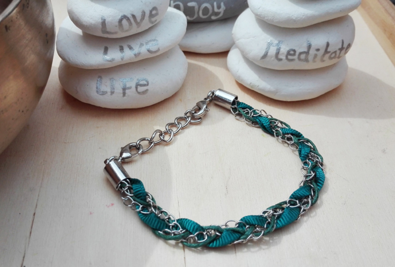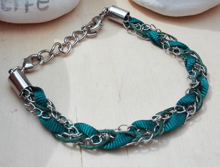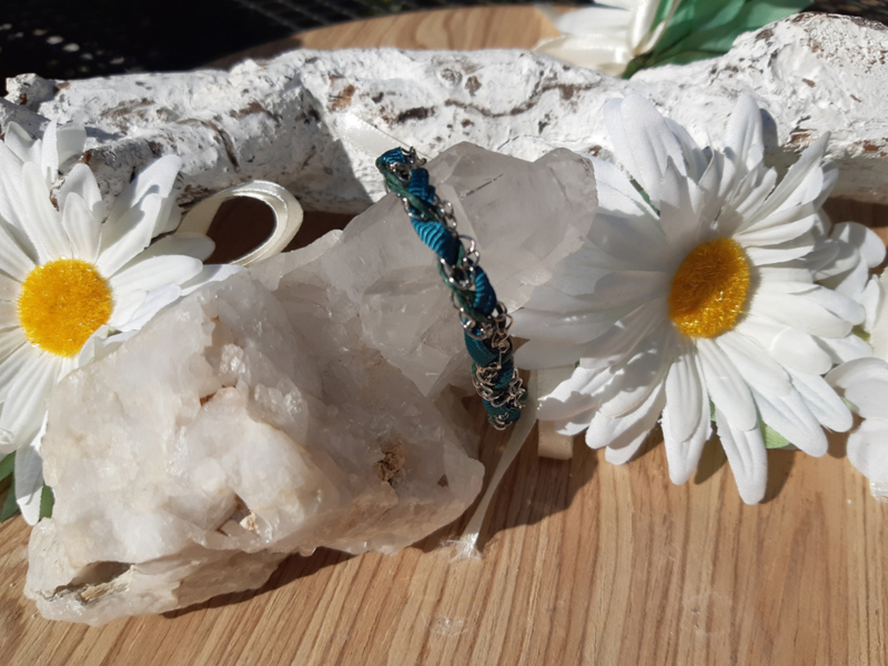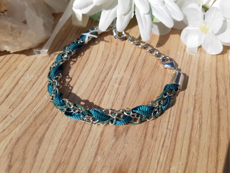 Armband - Ibiza - petrol / ketting gevlochten