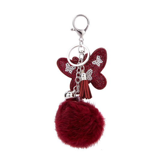 Sleutelhanger - Bol - met vlinder - bordeaurood