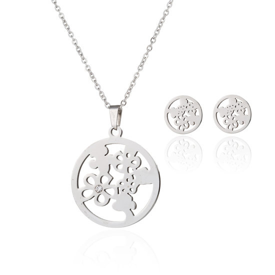 Sieraden Set bloemen en strass- ketting met oorbellen - RVS