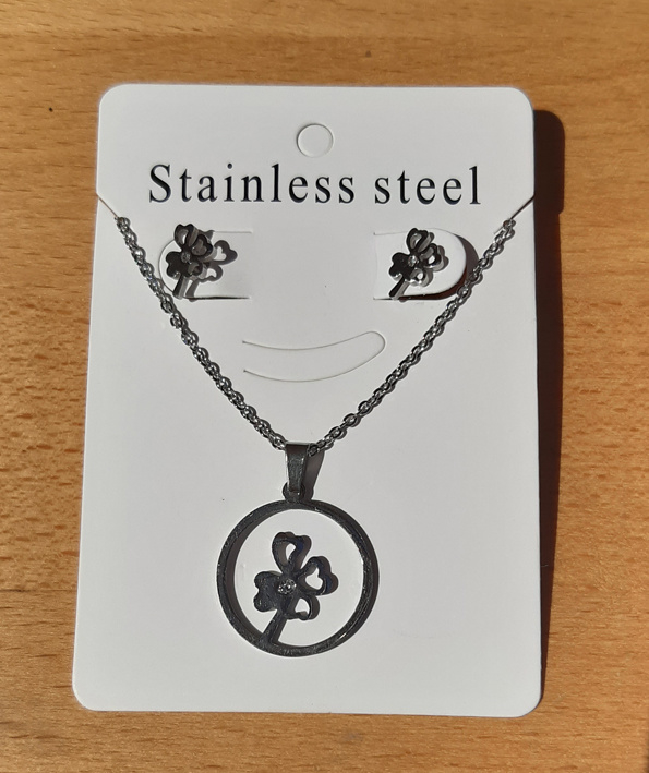 Sieraden Set Klavertje Vier - ketting met oorbellen - RVS
