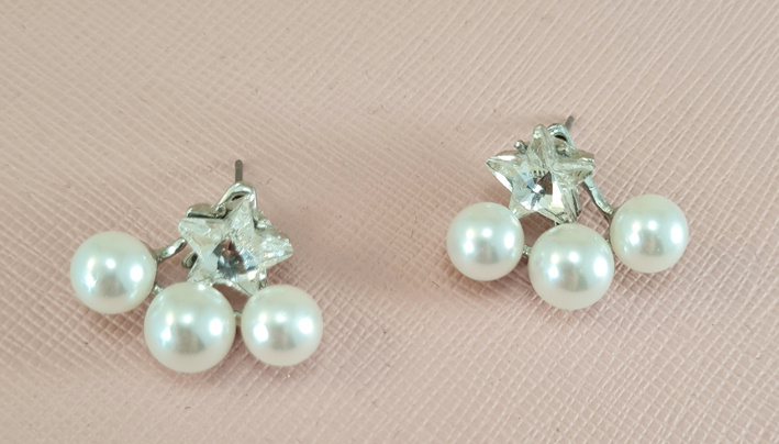 Mooie oorbellen met drie parels en een stras ster.