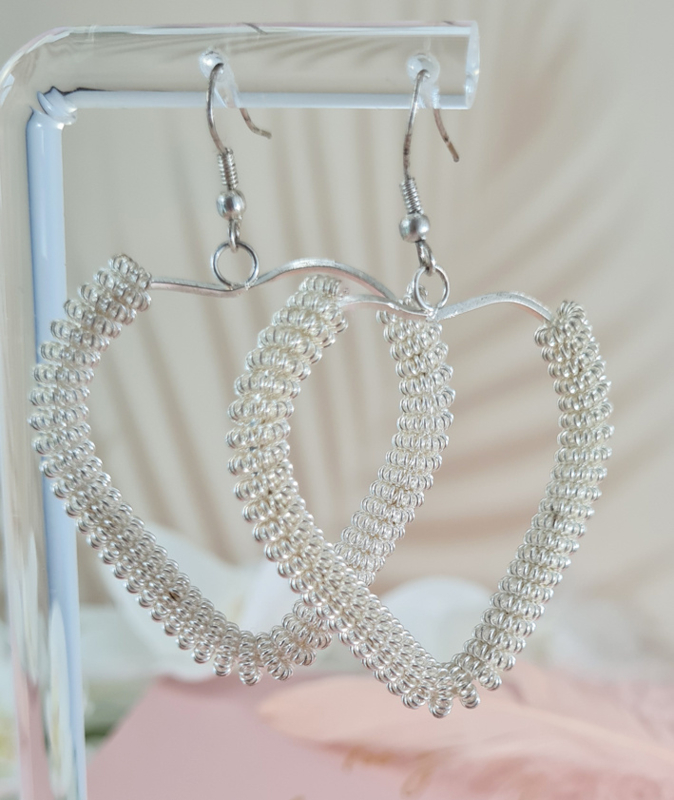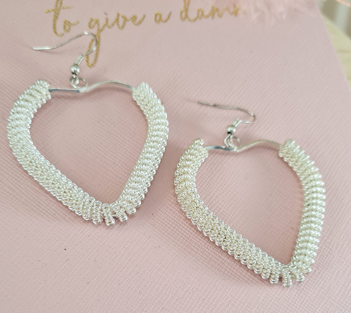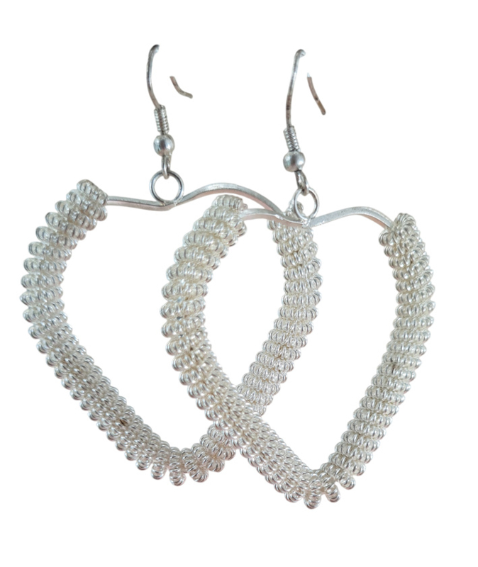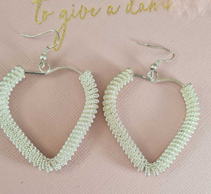 Gave oorbellen in de vorm van een hart met spiraal in zilverkleur.