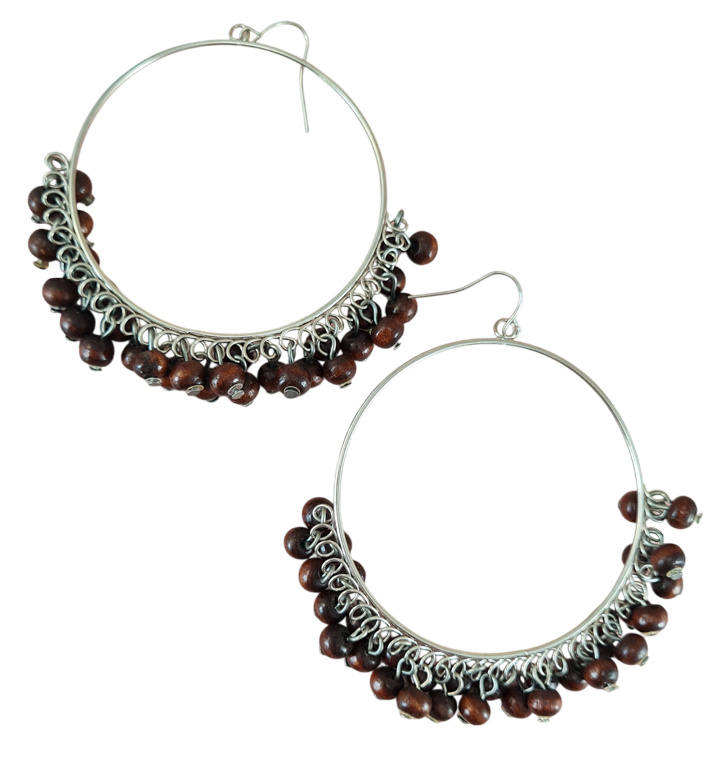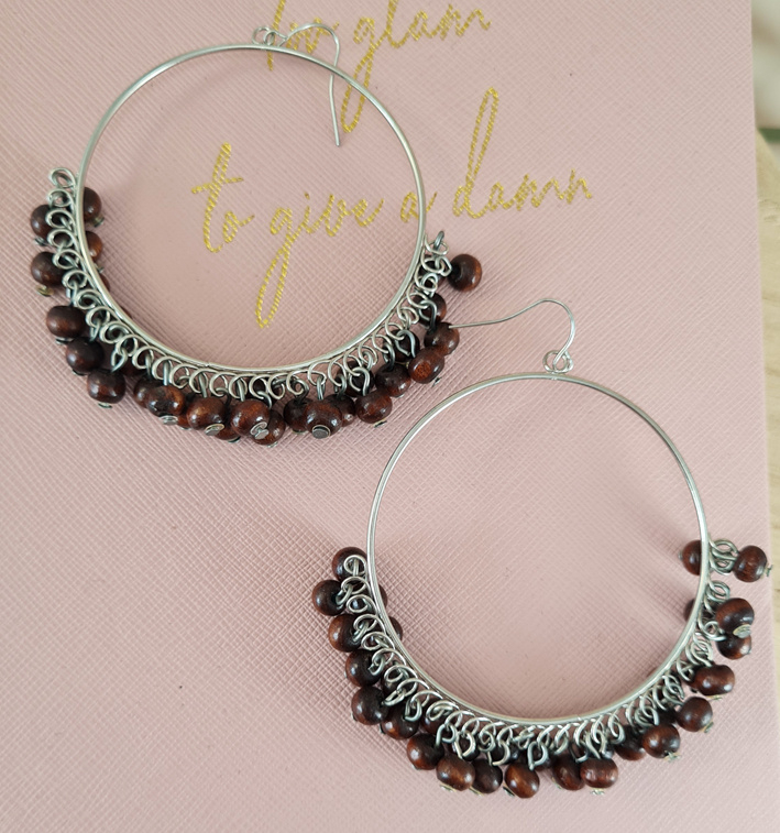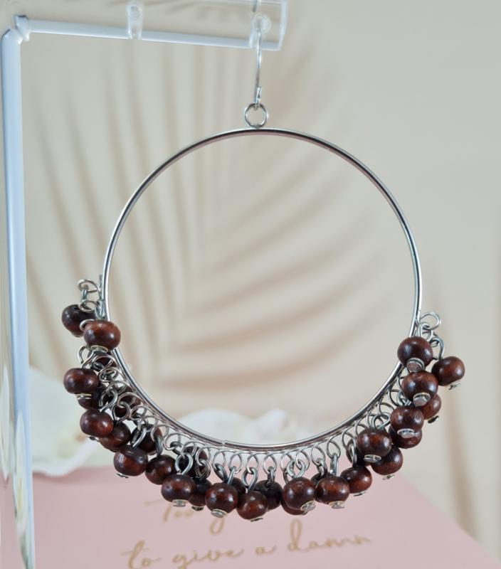 Oorbellen rond bruine kralen 6,5cm