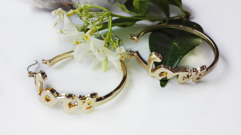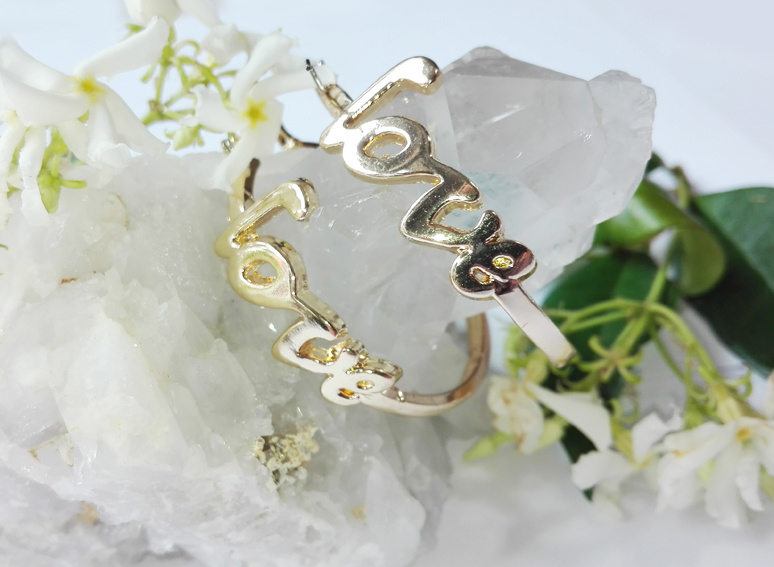 Leuke oorbellen in een creolen model met de letters LOVE hierop. In goudkleur.