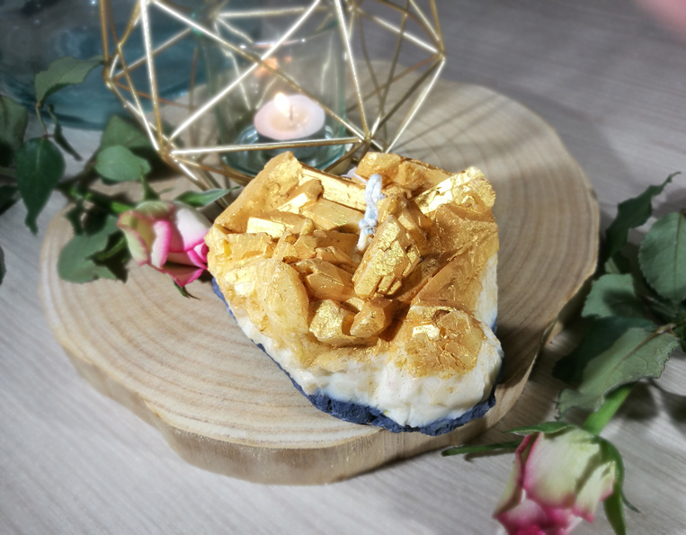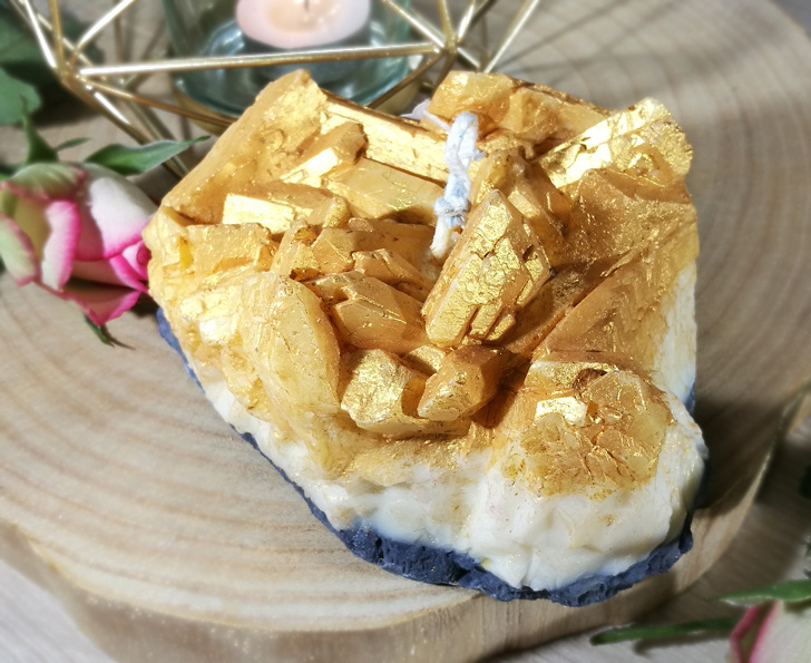 Geode Punt Kaars afmetingen: 15 x 6,5 cm (BxH), weegt ongeveer. 450 gram.