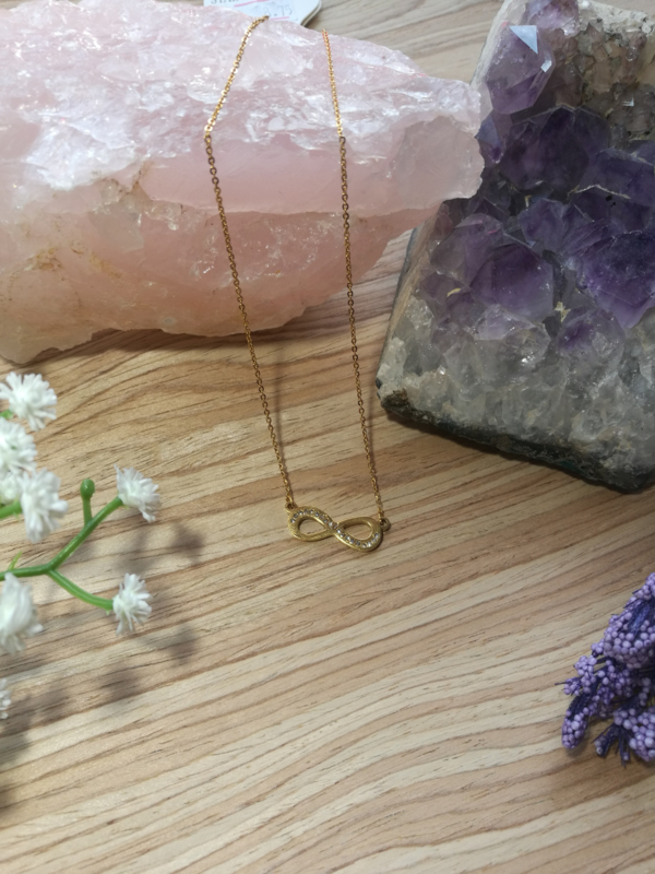 Ketting Infinity Stainless Steel - goudkleur met stras