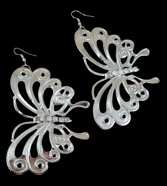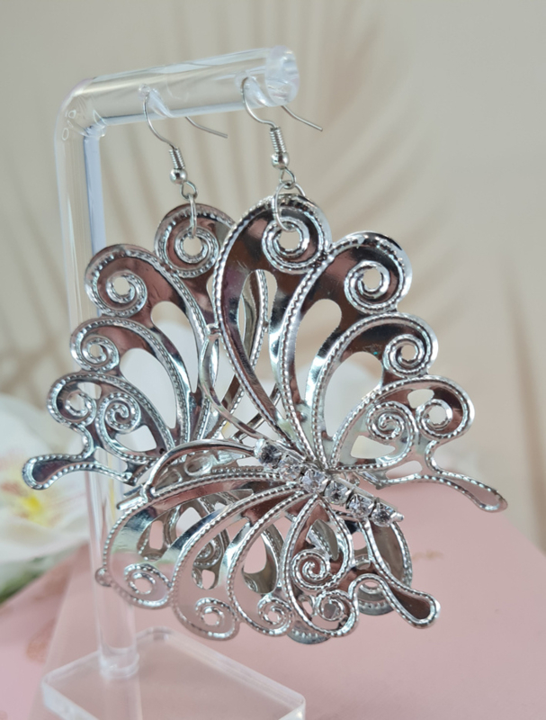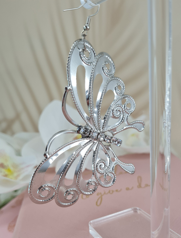 Mooie oorhangers, vlinder met strass lijfje. Vlinder 8.5cm.