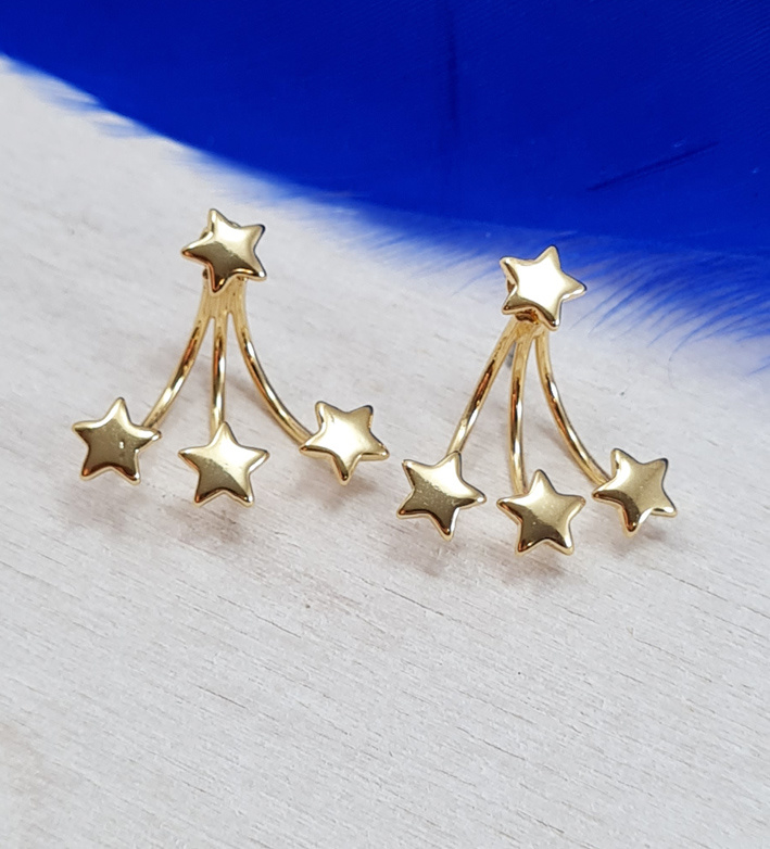 Deze oorbellen zijn heel gaaf. Want je ziet de lijnen niet. Deze komen achter je oor. Waardoor het lijkt of de drie sterren onder je oorlel hangen.