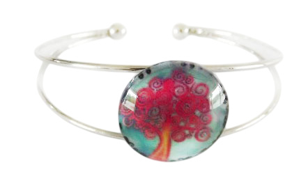 Armband Cabochon Levensboom roze blauw