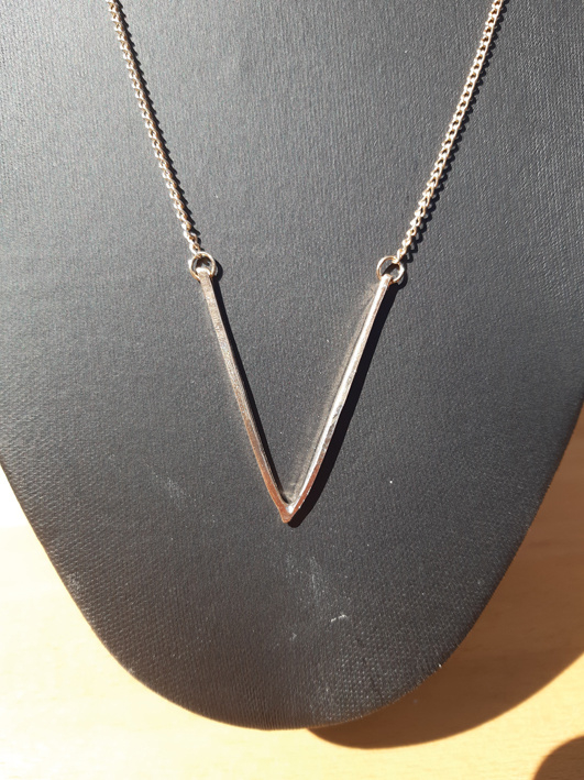 Een mooie lange ketting met een V vorm. Goudkleur. Wishbone