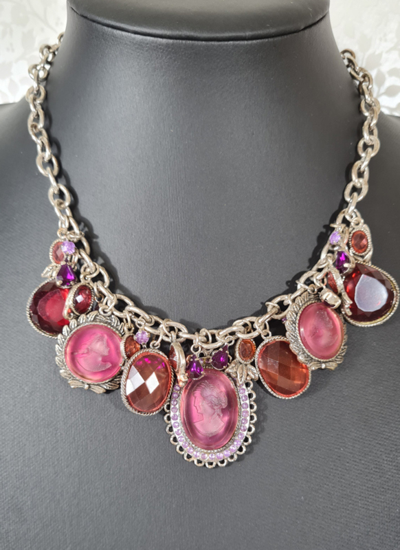 Een geweldige ketting met verschillende camee bedels. Bedels met een damesprofiel. Old look