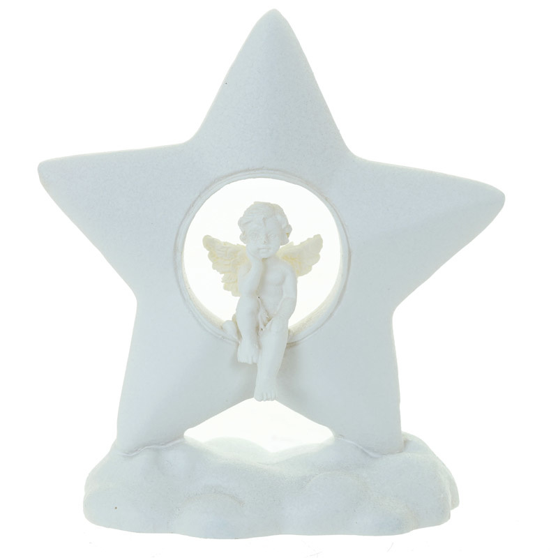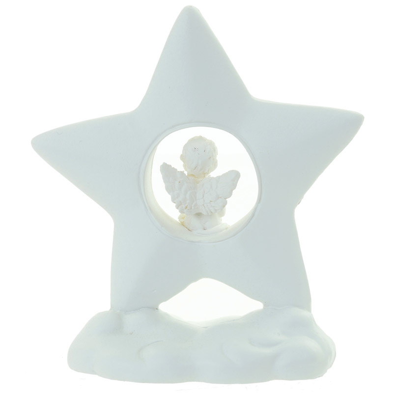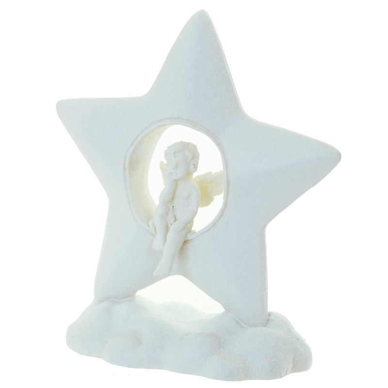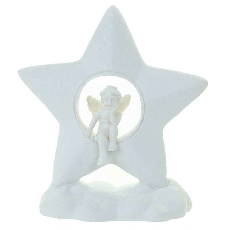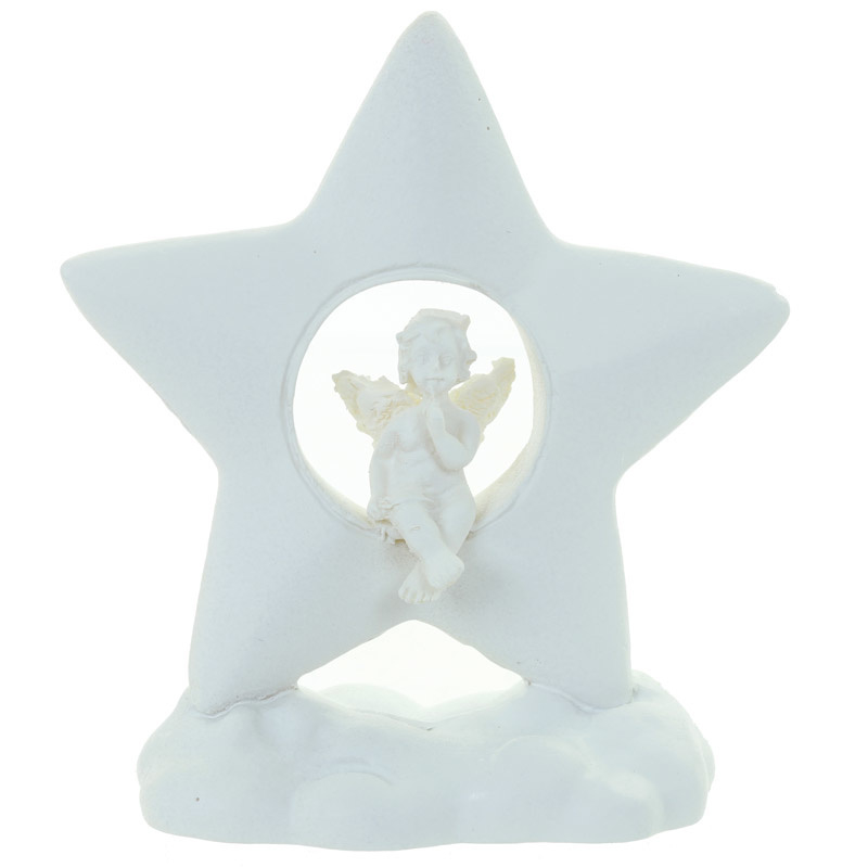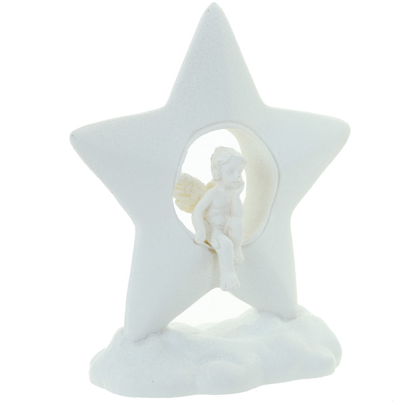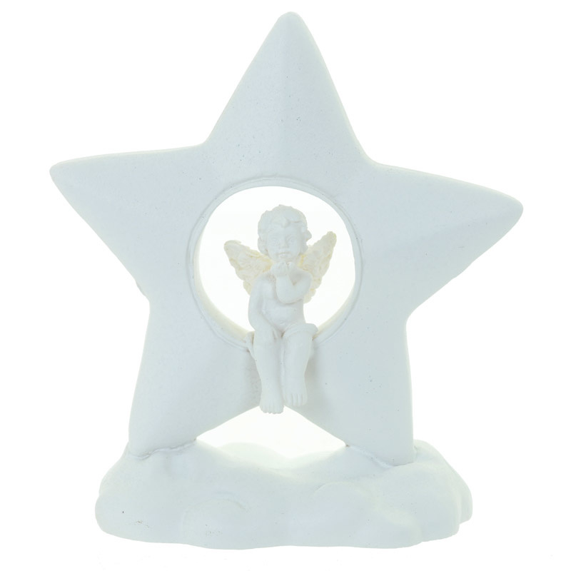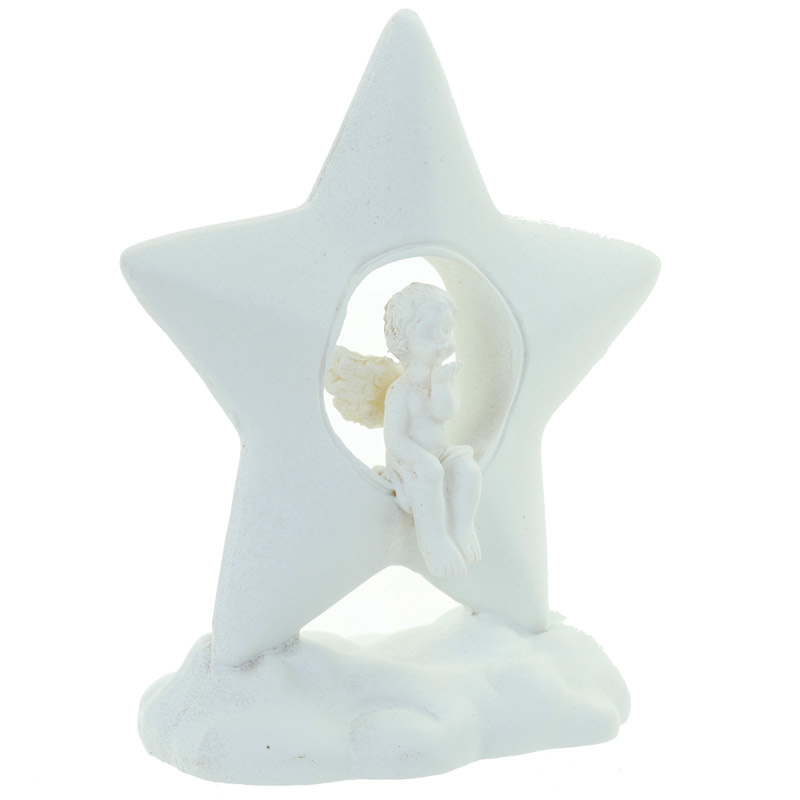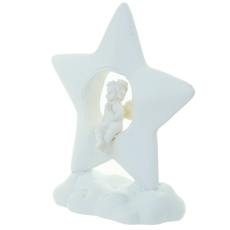 Beeld - Cherubijn zittend in een ster op een wolk - 7,5cm