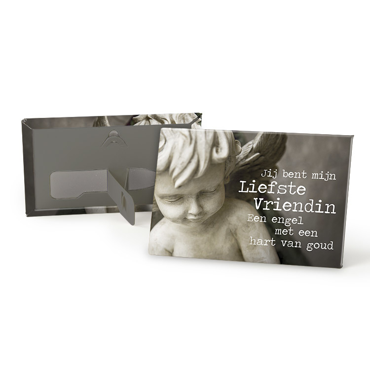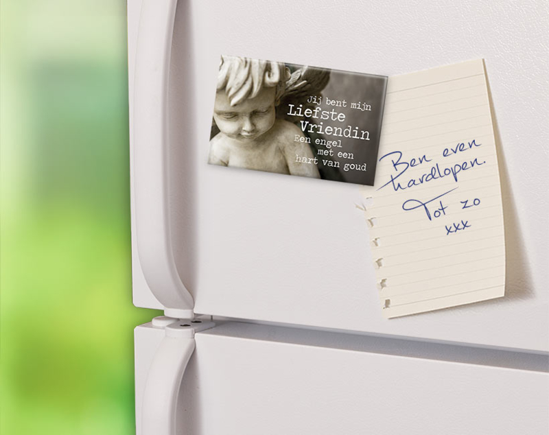 Magneet met de tekst: Jij bent mijn liefste vriendin. Een engel met een hart van goud