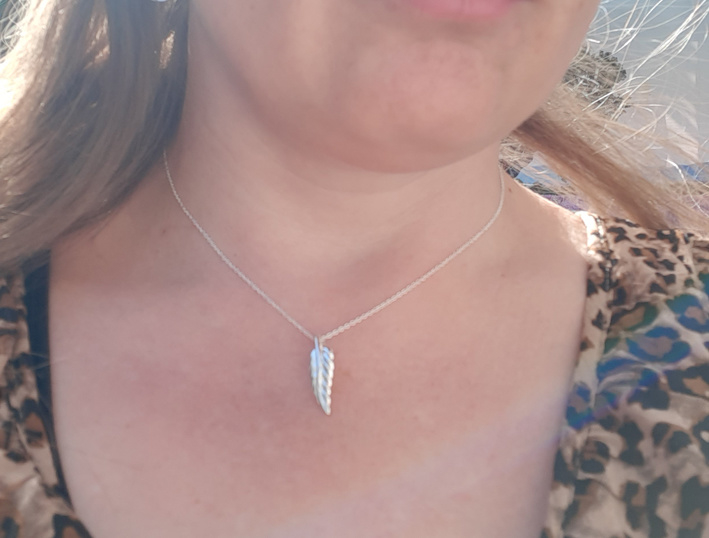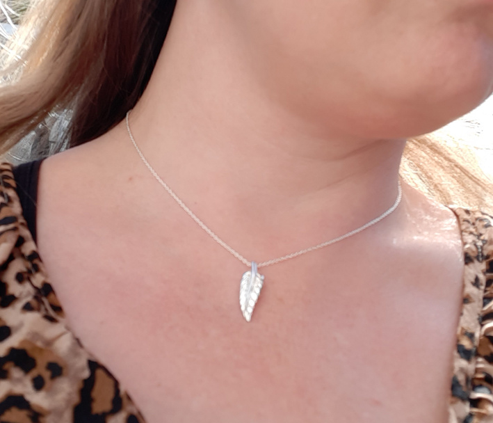 Een prachtige hanger in de vorm van een veer, voor aan je ketting.