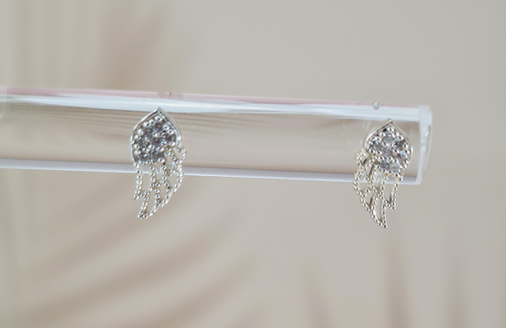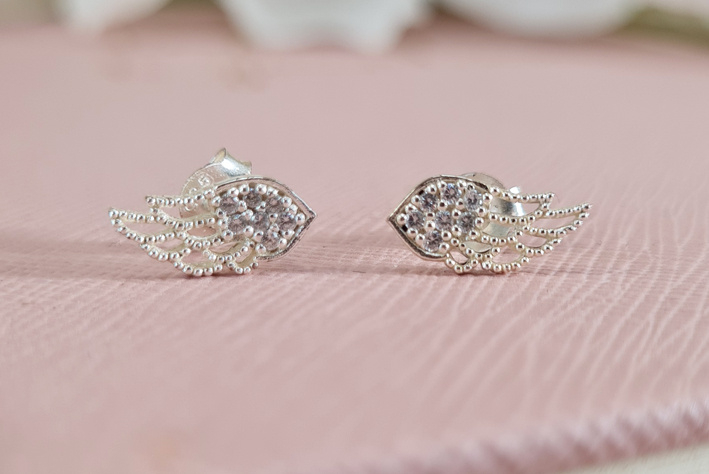 De 925 sterling zilveren oorbellen zijn zorgvuldig ontworpen voor een elegante en verfijnde uitstraling. De vleugelvormige oorbel is versierd met 14 zirconia-stenen die rondom de vleugel zijn geplaatst. Deze stenen zijn met vorkinstelling gezet voor een stevige en veilige bevestiging, zodat ze altijd blijven schitteren, ongeacht de gelegenheid.