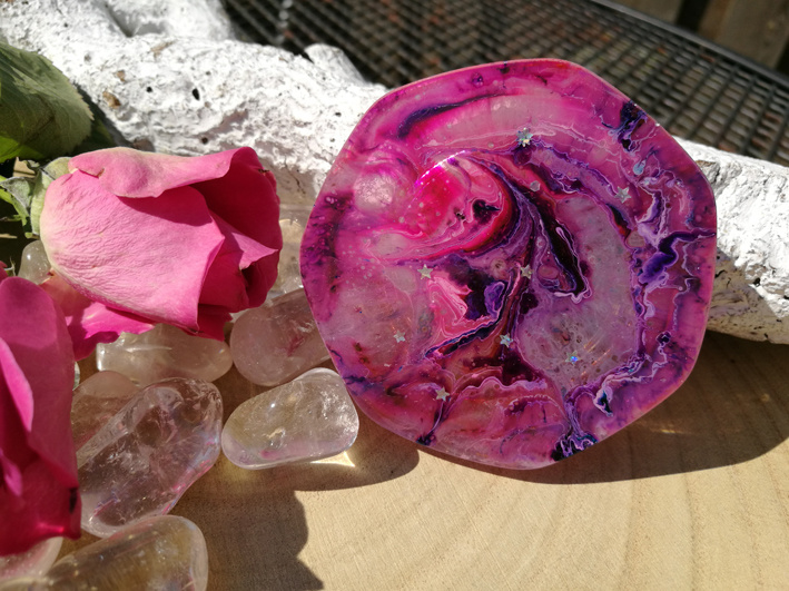 Orgonite oplaadschijf lila 6,8 cm