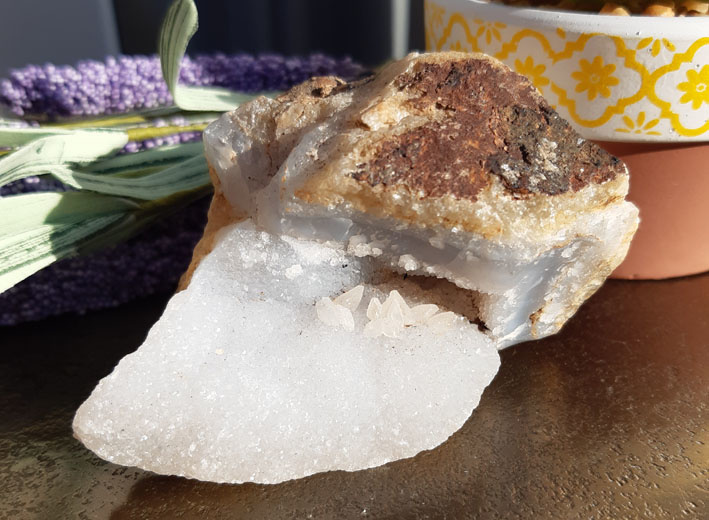 Chalcedoon - geode met Edelsteen clusterpunten - 8 cm