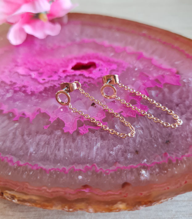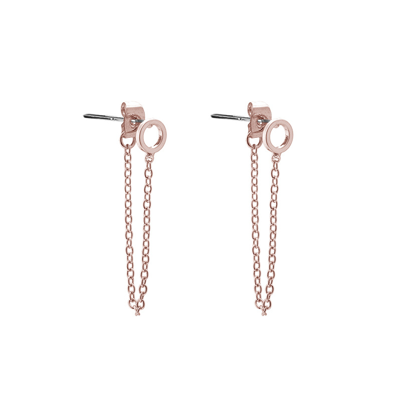 Artikelnummer: Y0286930-111 p OverzichtMooie trendy gold plated cirkel oorbellen met een ketting.