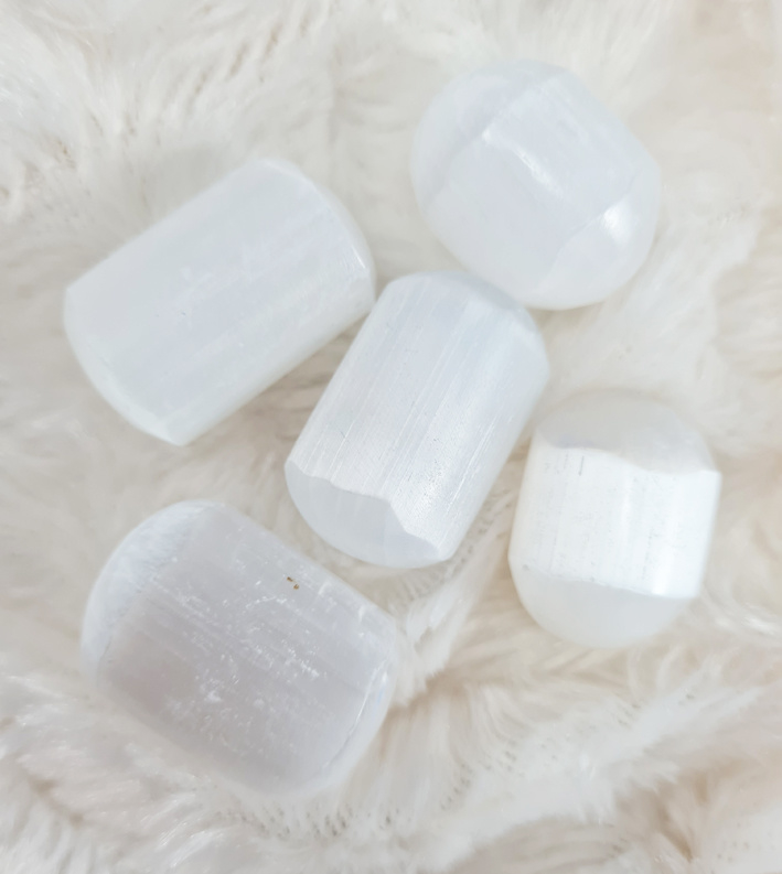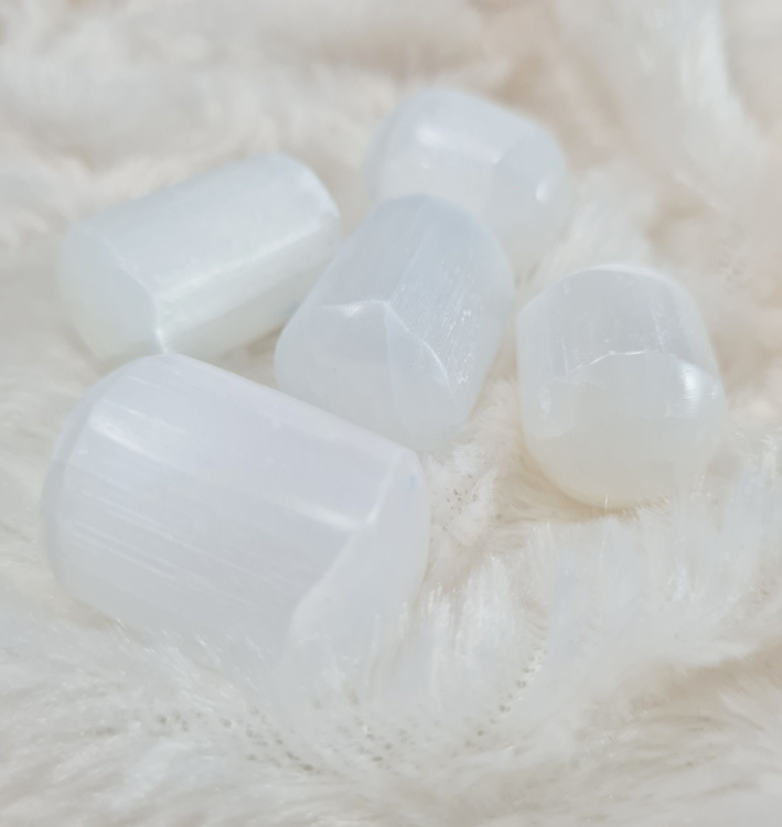 Artikelnummer: d OverzichtMooi afgeronde Seleniet trommelstenen.