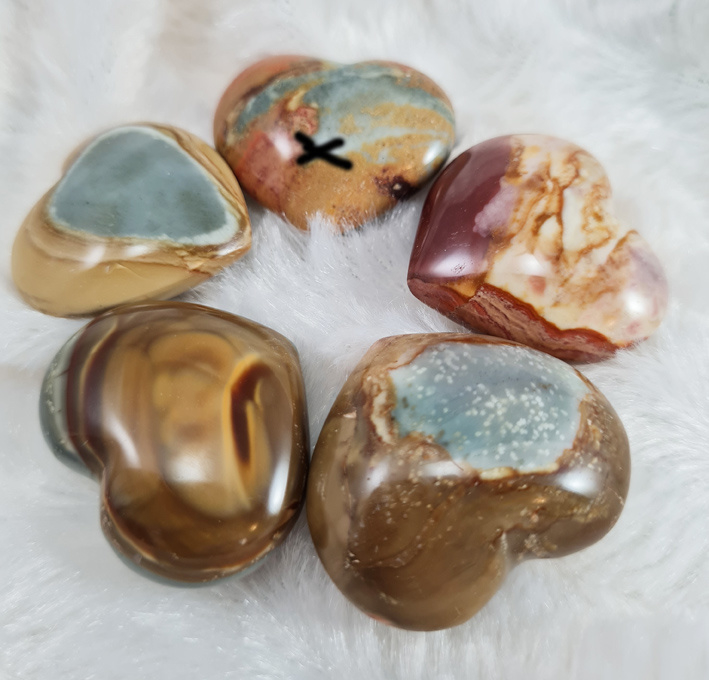 Prachtig Geslepen Polychroom Jaspis hart afkomstig uit China.