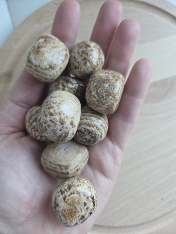 De aragoniet trommelstenen zijn mooi rond van vorm.
