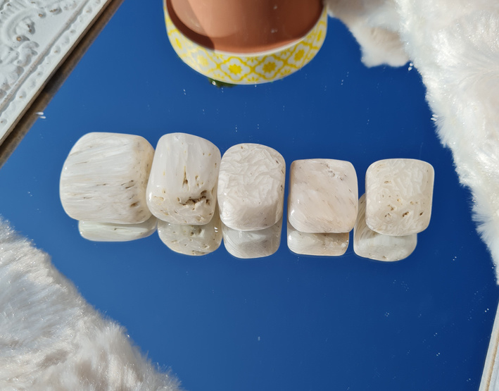 OverzichtTrommelstenen scoleciet of scolesiet uit India.