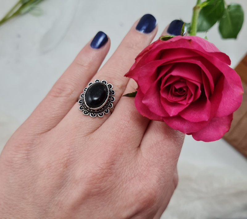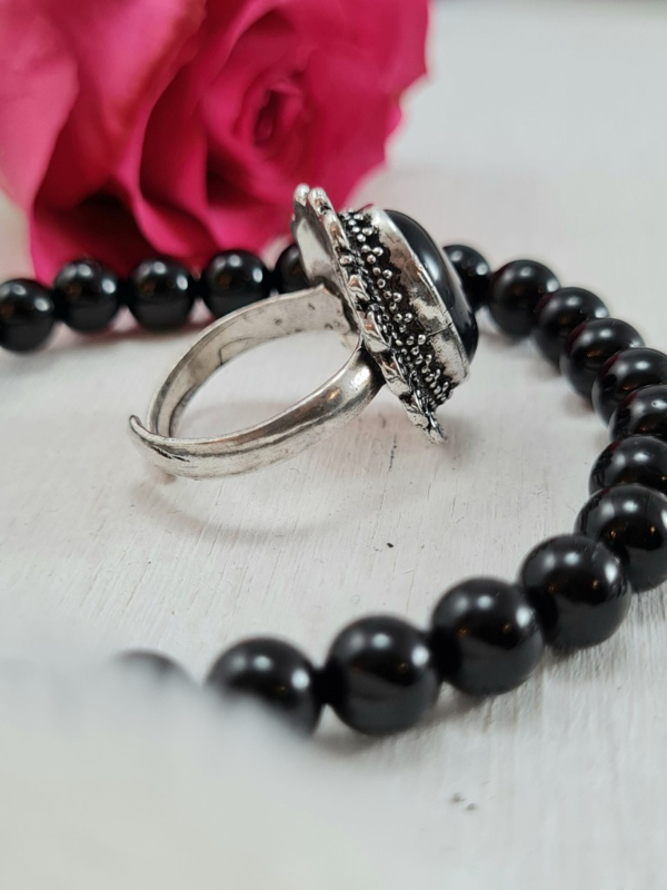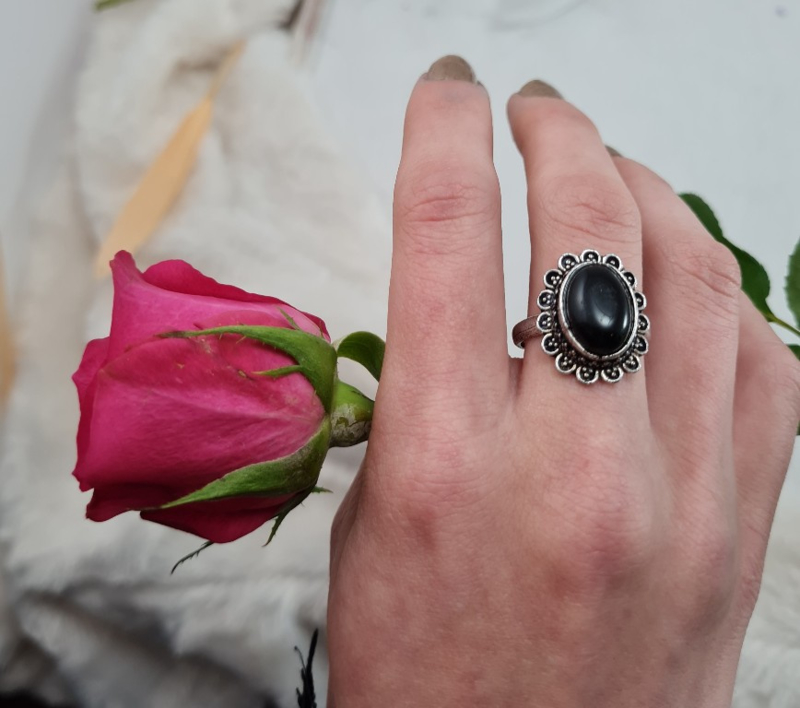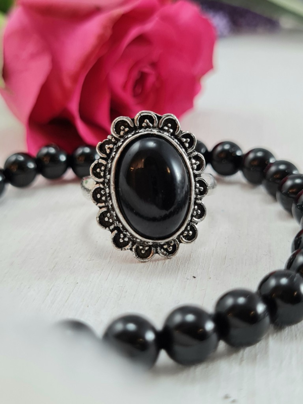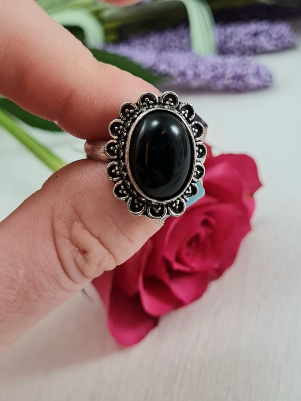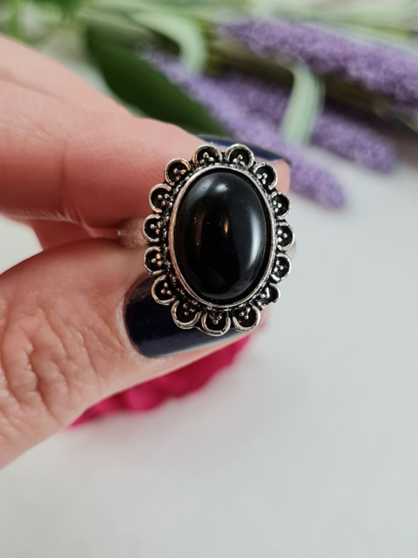 Ring - Zwarte Toermalijn - Verstelbaar - Messing