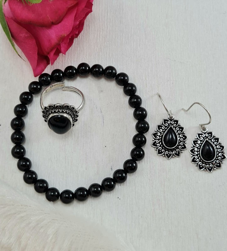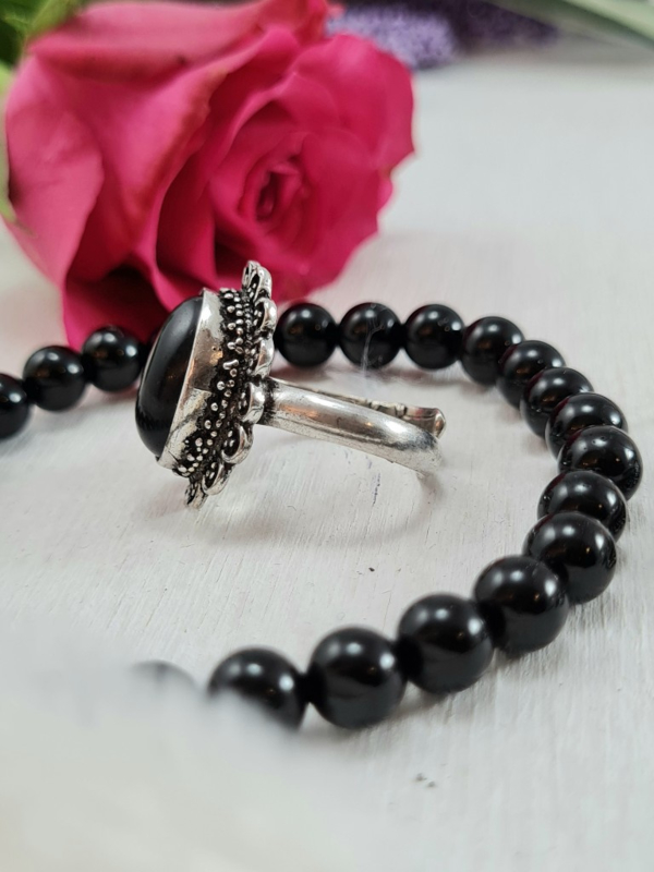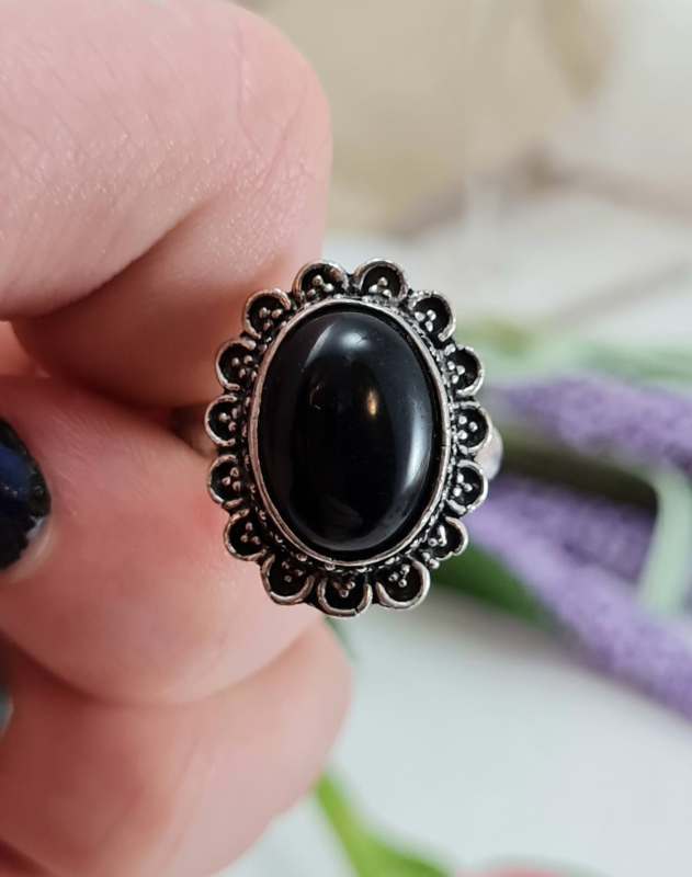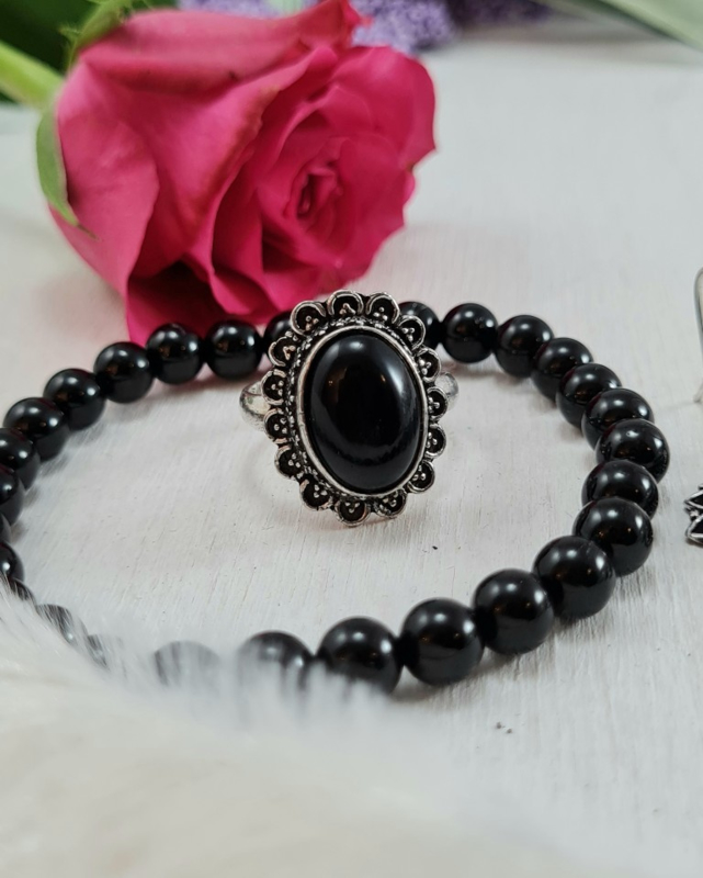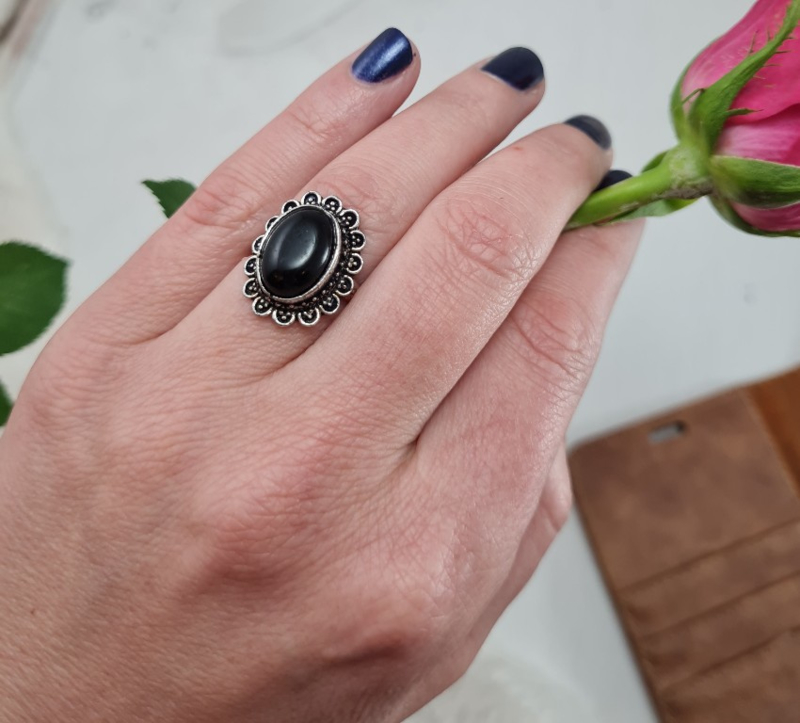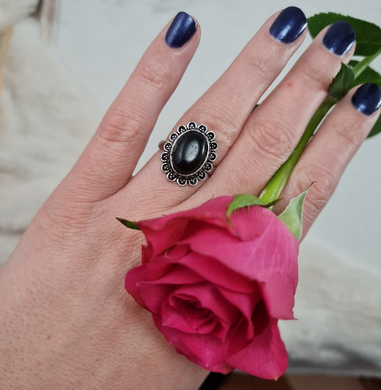 Ring - Zwarte Toermalijn - Verstelbaar - Messing