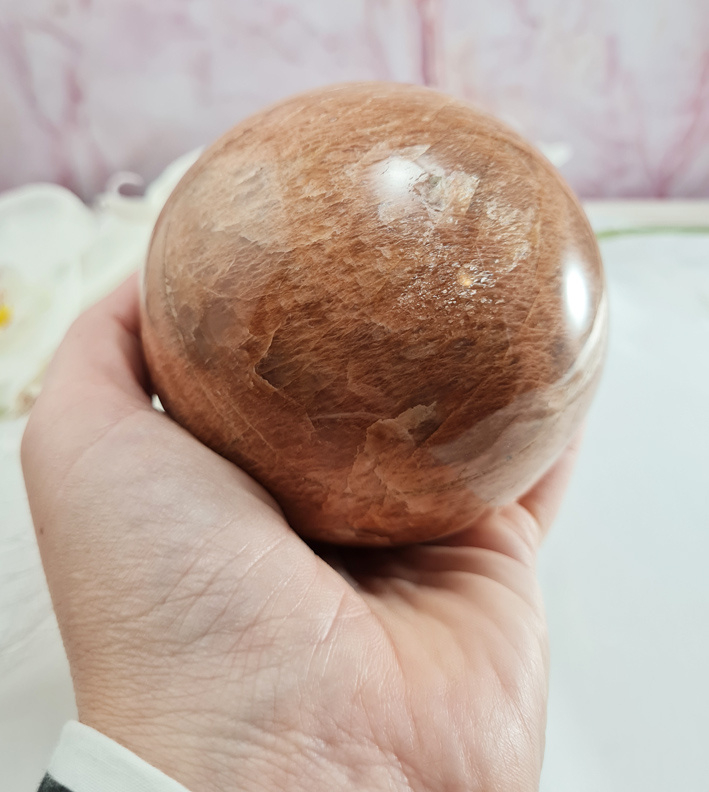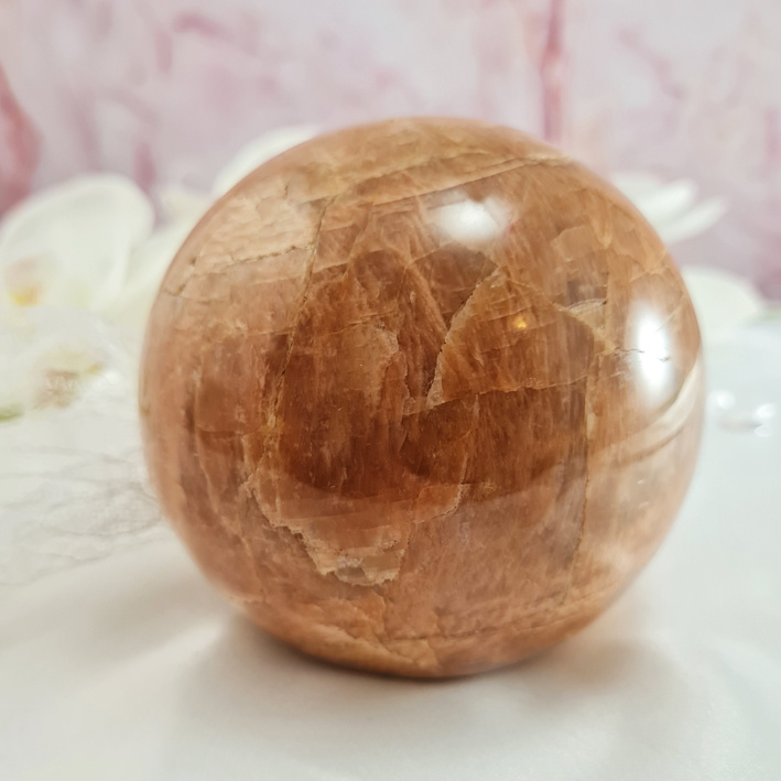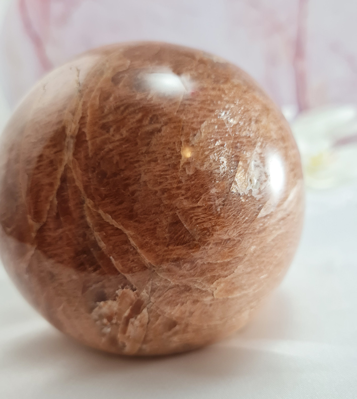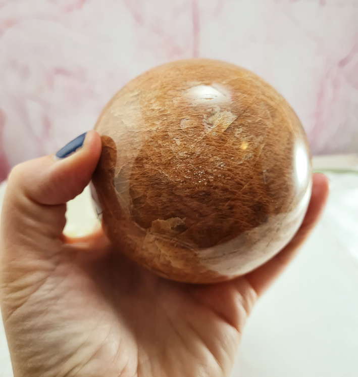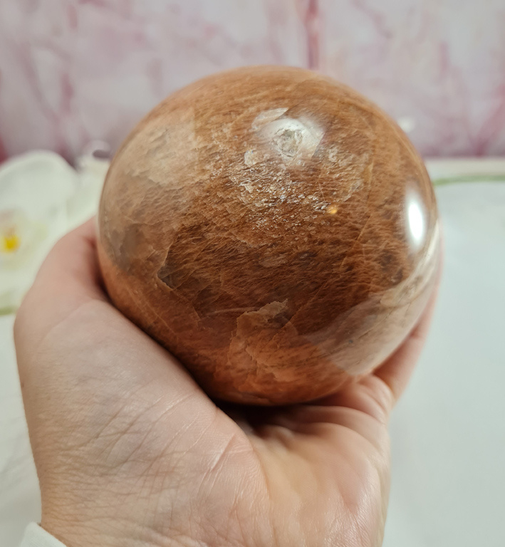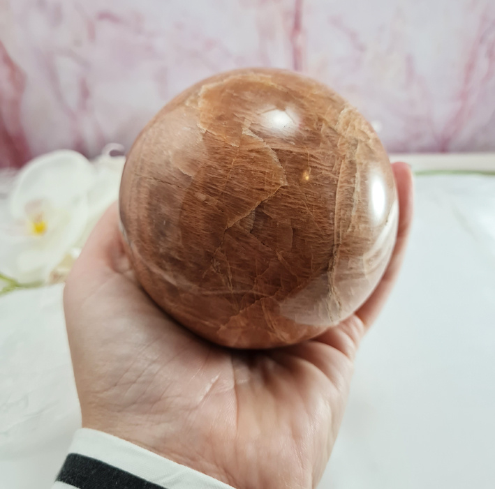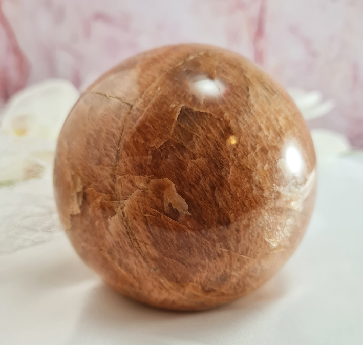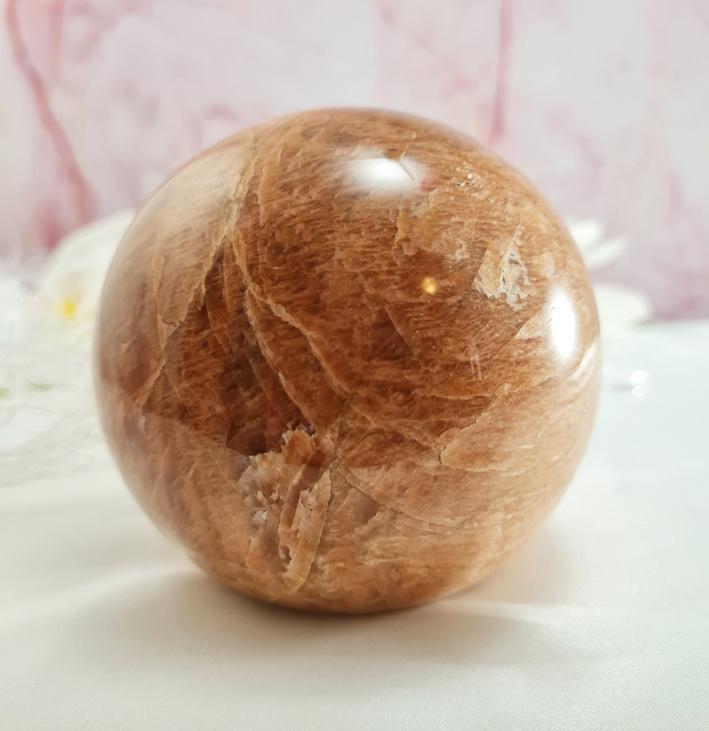 Artikelnummer: wmpv OverzichtEen prachtig grote roze maansteen bol. Gewoonweg wauw!