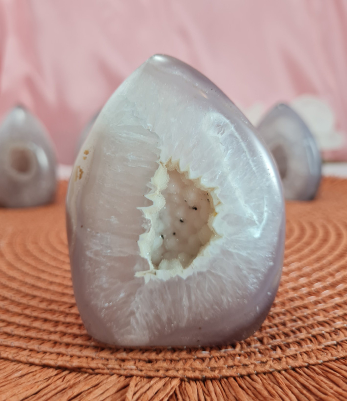 Artikelnummer: no.1 - wmivpdt OverzichtVoel de Kracht van de Agaat Edelsteen Sculptuur – Geode Druzy Vlam van 8 cm uit Brazilië