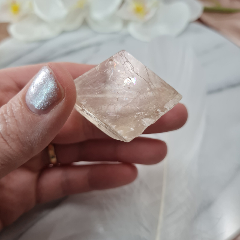 Deze mooie honingcalciet wordt ook wel dubbelspaat of optisch calciet genoemd. Met een mooie licht tot honing gele kleur.